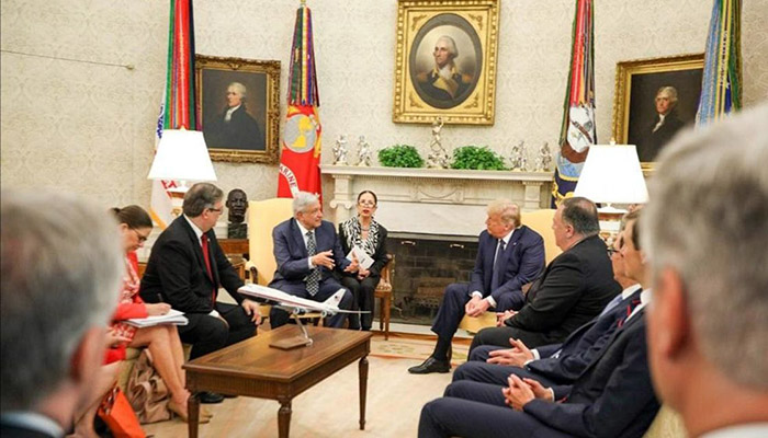 Finalmente el presidente Andrés Manuel López Obrador celebró el encuentro con su homólogo estadounidense Donald Trump, al manifestar que esta primera visita a La Casa Blanca obedece a las necesidades económicas derivadas de la entrada en vigor del T-MEC, el cual calificó como un gran logro en beneficio de México, Estados Unidos y Canadá, además, aprovechó la oportunidad para subrayar la aportación de la comunidad migrante a la economía y desarrollo de Estados Unidos, por lo que apuntó ambos países están unidos por diversos vínculos, culturales y de vecindad, más allá de los financieros.