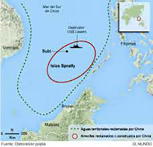 China reclama cerca del 90% del área mediante su controvertida "línea de nueve trazos", desestimando el fallo arbitral de 2016 que favoreció a Filipinas.