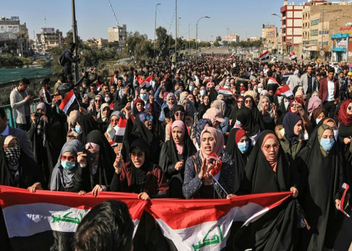 La escalada en Irak hizo que la revuelta contra sus dirigentes, considerados corruptos e incompetentes por los manifestantes, pasara a un segundo plano.