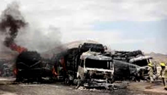ATAQUE CON BOMBA DESTRUYE 22 CAMIONES DE LA OTAN EN AFGANISTAN