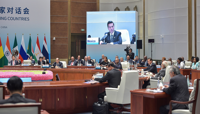 XIMEN, China, 05 de septiembre de 2017.- Durante su segundo día de actividades en Xiamen, China, el Presidente Enrique Peña Nieto participó en el Diálogo de Economías Emergentes y Países en Desarrollo, que se celebra en el marco de la IX Cumbre de los BRICS, cuyo propósito es intercambiar experiencias sobre colaboración para el avance de la implementación de la Agenda 2030. profundización de la cooperación sur-sur, promoción de la conectividad y el comercio, y mecanismos para la erradicación de la pobreza.