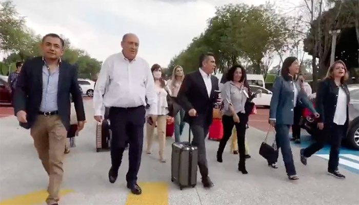 En un video compartido en redes sociales por Alejandro Moreno, legislador y líder nacional del ‘Tricolor’, se puede ver a los priistas llegando al recinto legislativo a bordo de dos autobuses con maletas.