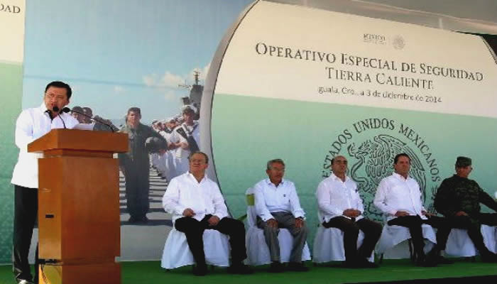 La Federación asume el control en la Tierra Caliente de Michoacán, Estado de México, Guerrero y Morelos excepto en los municipios de Coatlán del Río, Tetecala, Puente de Ixtla y Amacuzac, porque el Mando Único estatal ya opera en ellos y se mantendrá la coordinación con las fuerzas federales, informó Graco Ramírez.
