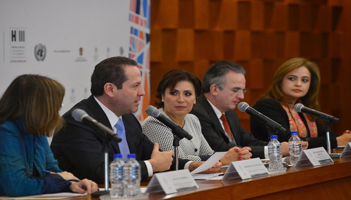 Así lo dieron a conocer en un mensaje a medios de comunicación, la secretaria de Desarrollo Agrario, Territorial y Urbano (Sedatu), Rosario Robles Berlanga; la coordinadora del Secretariado de Hábitat III, Ana Moreno; la senadora Ana Lilia Herrera Anzaldo, presidenta del Grupo Mexicano de Parlamentarios para el Hábitat, el subsecretario de Asuntos Multilaterales y Derechos Humanos de la Cancillería Mexicana, Miguel Ruiz Cabañas y el gobernador del Estado de México, Eruviel Ávila Villegas, quien afirmó que los temas de este encuentro serán fundamentales para el legado a las nuevas generaciones.