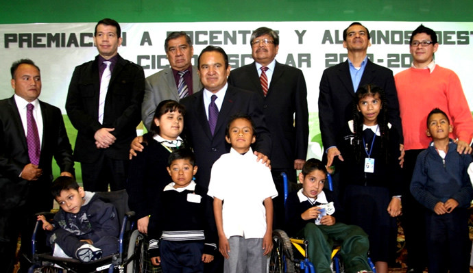 El presidente municipal, Pablo Bedolla López, felicitó a los estudiantes destacados, especialmente los niños sordomudos, con problemas psicomotrices, visuales y síndrome de Down, a quienes se les estructuró un programa especial de trabajo dentro del grupo escolar, estudiando con niños con características regulares para que puedan lograr una integración exitosa, con el apoyo de la Unidad de Servicio de Atención a la Educación Regular (USAER).