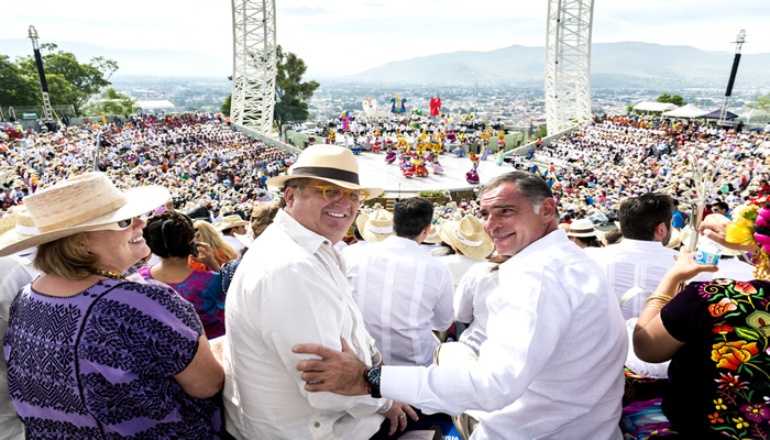 La Guelaguetza , fue presenciada por miles de turistas nacionales e internacionales, así como por autoridades, entre ellas el gobernador Gabino Cue y su homólogo de Morelos, Graco Ramírez, quien informó sobre un acuerdo cultural que suscribieron ambos gobernantes, en esta entridad.