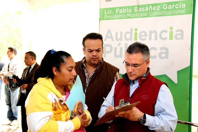 TLALNEPANTLA DE BAZ, ESTADO DE MEXICO, 25 de junio de 2013.- Las campañas de confrontación política quedaron atrás, "hoy estamos en la campaña de dar resultados”, afirmó el presidente municipal Pablo Basáñez García a los Consejos de Participación Ciudadana (COPACI) que asistieron a la quinta Audiencia Pública celebrada en el Deportivo Caracoles de la Zona Oriente del municipio con los sectores 11 y 12.