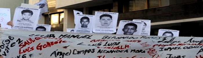 Las protestas reclaman justicia y condenan la desaparición de 43 estudiantes de la escuela de maestros de Ayotzinapa, en el sureño estado de Guerrero, el 26 de septiembre en Iguala -misma región-, tras ser atacados por policías corruptos y narcos bajo órdenes del alcalde local vinculado al cártel Guerreros Unidos.