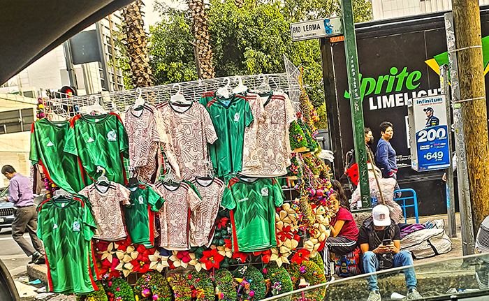 La venta de camisetas de la selección mexicana, balones y copias del trofeo que se entregará en Qatar se vieron por doquier.