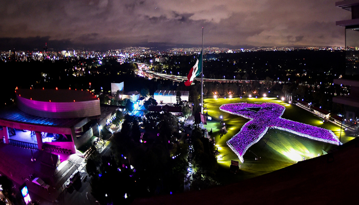 CIUDAD DE MEXICO, Estados Unidos Mexicanos, 02 de octubre de 2017.- Unos 15 mil empleados de las delegaciones del IMSS y del cuerpo de trabajo del ISSSTE, así como enfermeras y enfermeros del Instituto Mexicano del Seguro Social, del Instituto de Seguridad y Servicios Sociales de los Trabajadores del Estado, y del DIF Nacional formaron el Lazo México, que consiste en un gran moño humano con el que arranca la campaña contra el cáncer de mama por parte del Sector Salud.