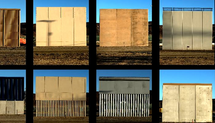 Los prototipos, construidos por seis empresas, superan en altura al muro fronterizo que existe actualmente y la Oficina de Aduanas y Protección Fronteriza de Estados Unidos informó que los evaluará por sus capacidades para evitar que sean escalados, penetrados o atravesados por un túnel en tierra.
