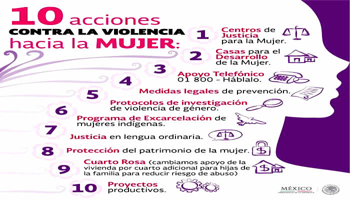 Por ello, el gobierno de la República lanzò 10 Acciones contra la violencia hacia la mujer: