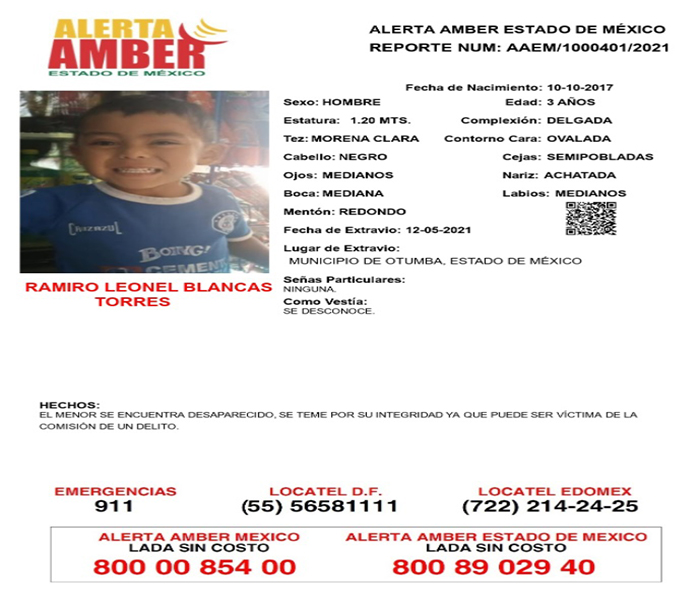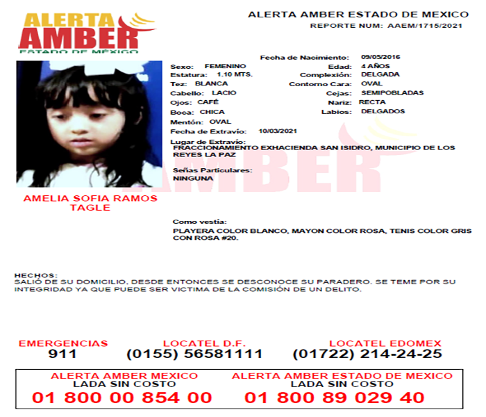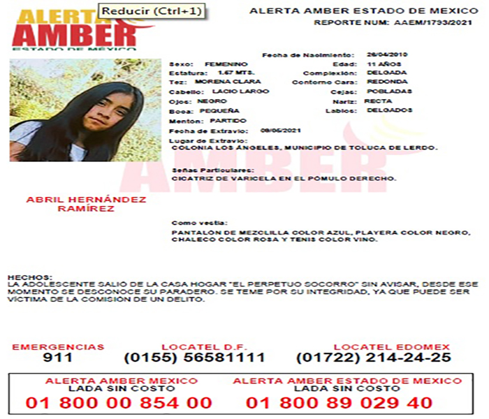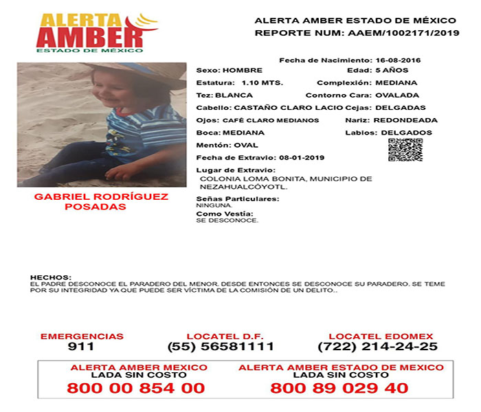 Ambas personas fueron vistas por última vez el pasado 24 de abril, cuando viajaban a bordo de un vehículo tipo pipa de gas, en la calle Sonora, en el poblado de San Cristóbal Huichochitlán, en el municipio de Toluca. Desde ese momento se desconoce su paradero.