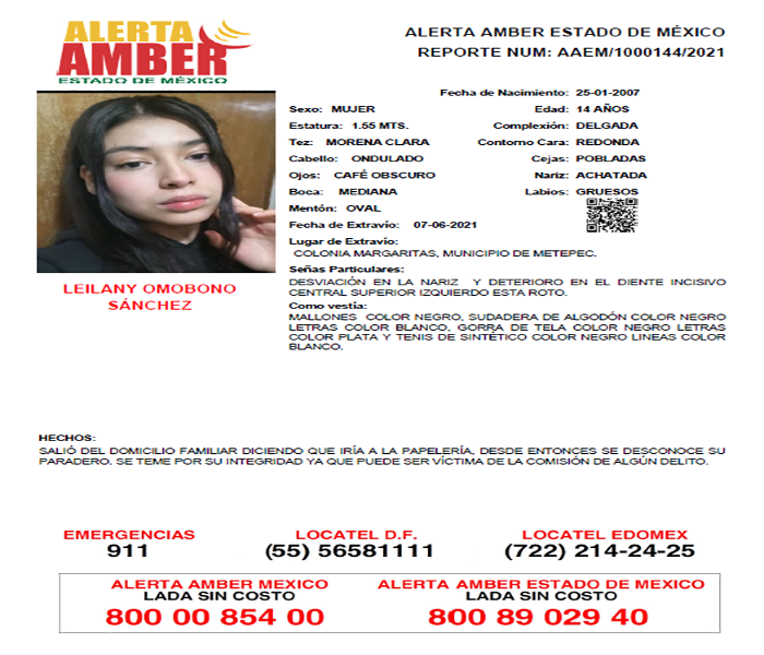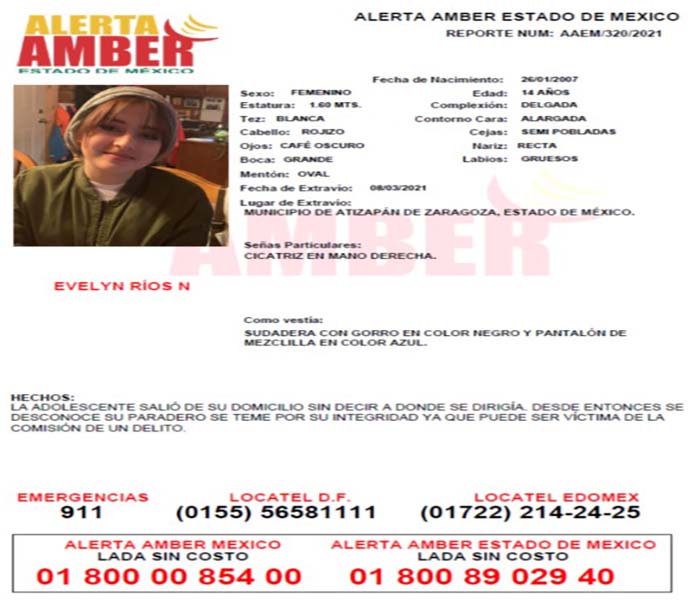 Mediante un acuerdo signado por el Alejandro Gómez Sánchez, Fiscal General mexiquense, se autorizó la entrega de una recompensa de hasta 300 mil pesos para localizar a las siguientes personas reportadas como desaparecidas o no localizadas: