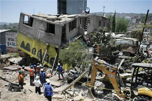 MUEREN DOS TRABAJADORES AL DESPLOMARSE UNA CASA EN LA MEX-PACH