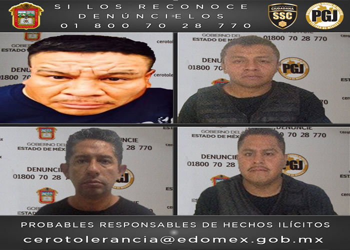 Durante la conferencia de prensa fueron mostradas las fotografías de las personas aseguradas con la única finalidad de que la ciudadanía en general pueda conocer sus características físicas, con el objetivo de que, si los reconocen como los probables responsables de algún hecho delictivo, los denuncien a la Procuraduría mexiquense, a través del correo electrónico cerotolerancia@edomex.gob.mx o mediante el número telefónico 01 800 7028770.